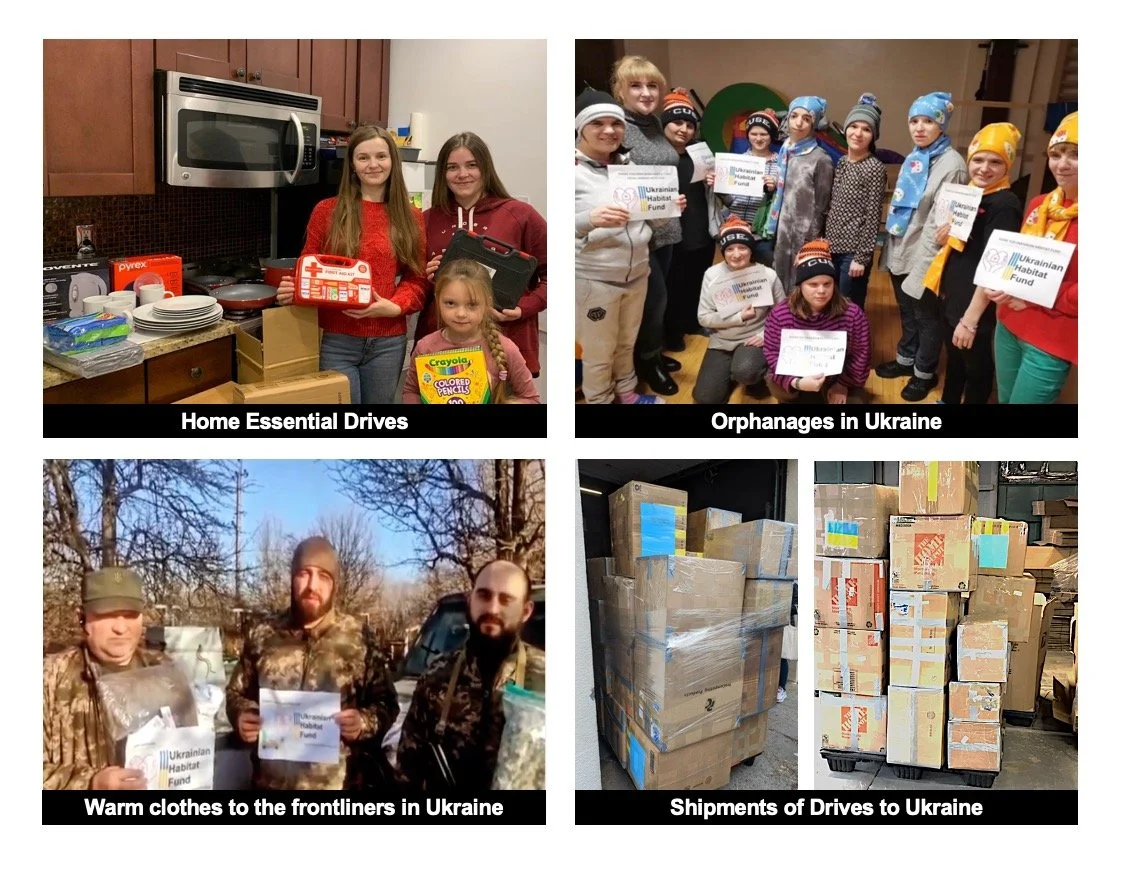 Providing home essentials to families and coordinating drives & pledge campaigns to collect and ship necessary items to Ukraine.